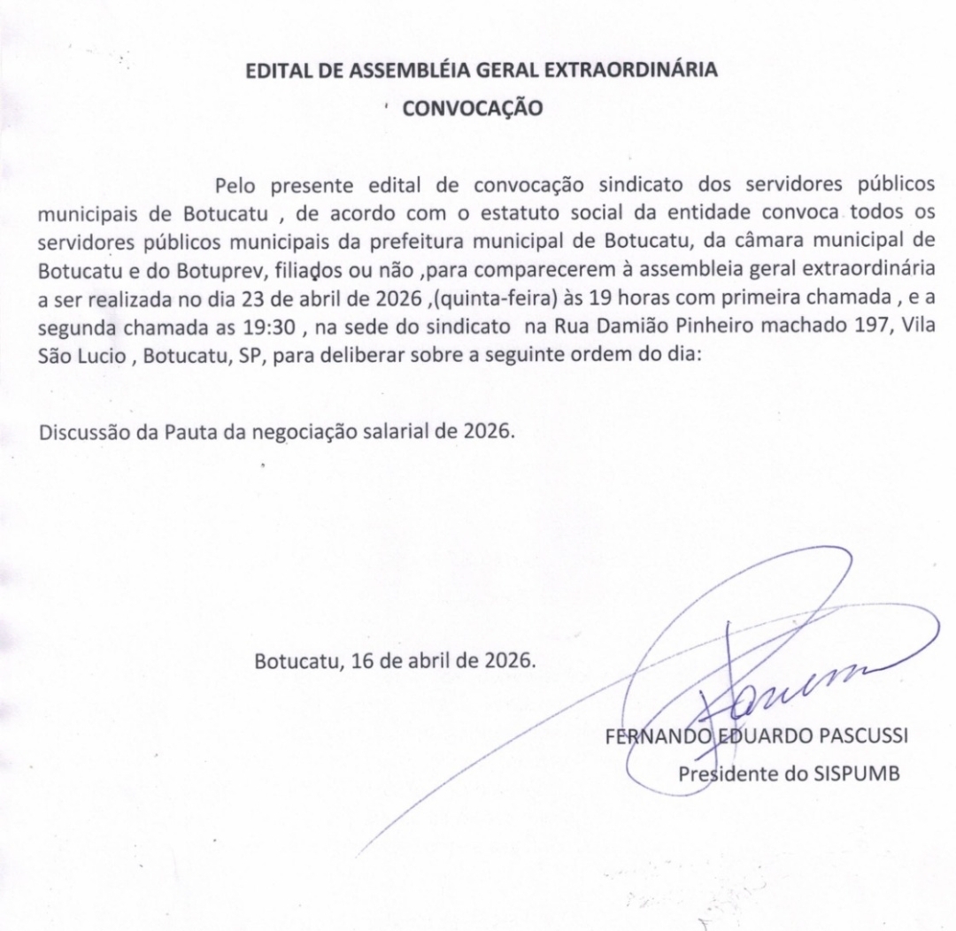 Sispumb publica edital para negociação salarial 2026